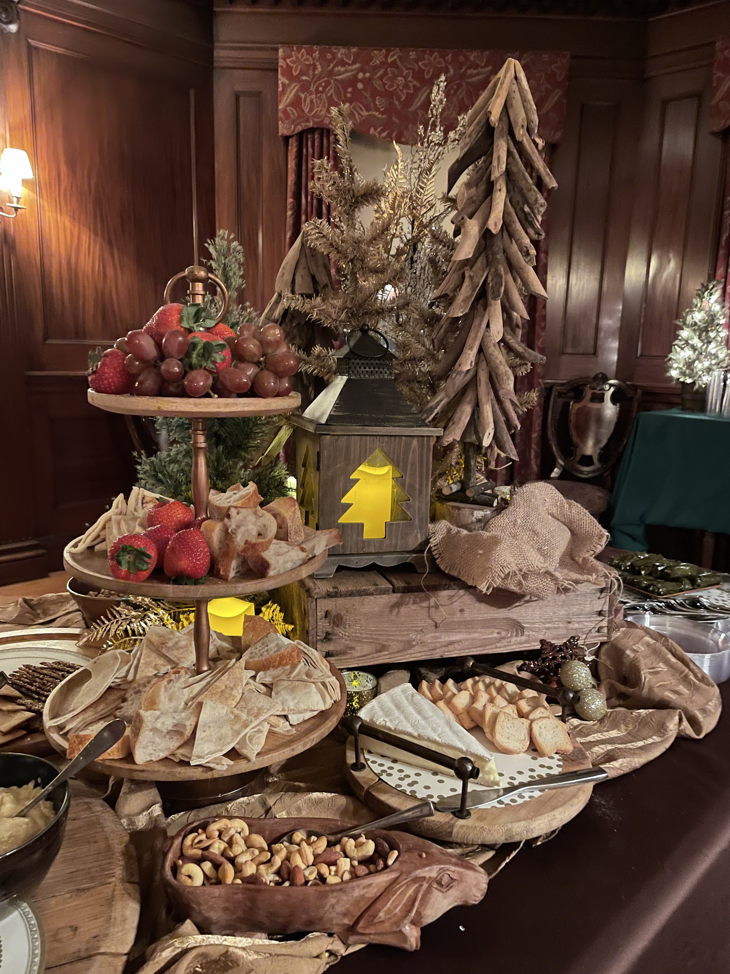 Hummus, tabouleh, etch, muhammara, feta spread, baked eggplant, falafel, dolma, tapenade, lentil pilaf